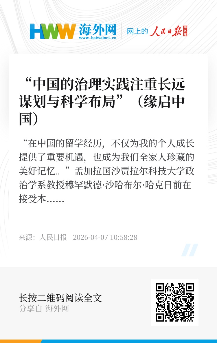 “在中国的留学经历,不仅为我的个人成长提供了重要机遇,也成为我们全家人珍藏的美好记忆。”孟加拉国沙贾拉尔科技大学政治学系教授穆罕默德·沙哈布尔·哈克日前在接受本报记者专访时表示,“这段难忘的时光为我打开了深入了解中国式现代化的窗口。”
