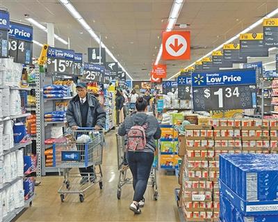 一年来,美国关税政策对许多商品价格的影响日益显著。图为4月5日,美国民众在弗吉尼亚州一家连锁超市内选购商品。