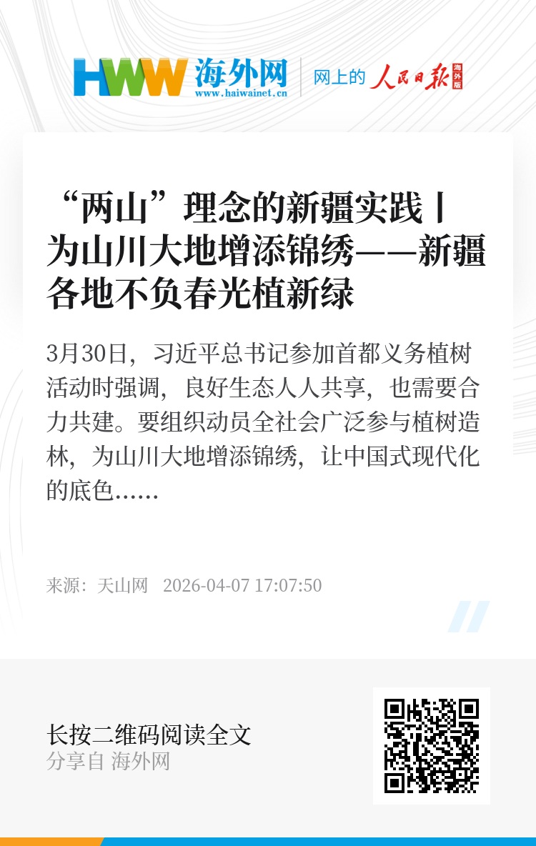 瀚海沐春风,天山南北的植绿热潮持续涌动。一个个治沙项目加速推进,一个个绿色屏障不断延伸,各族干部群众以实干笃行浇灌生态之花,在守护家园的征程上奋勇前行,为建设美丽新疆注入源源不断的动能。(天山网-新疆日报记者 曹华)