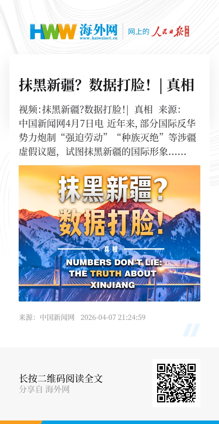 中新网4月7日电 近年来,部分国际反华势力炮制“强迫劳动”“种族灭绝”等涉疆虚假议题,试图抹黑新疆的国际形象。