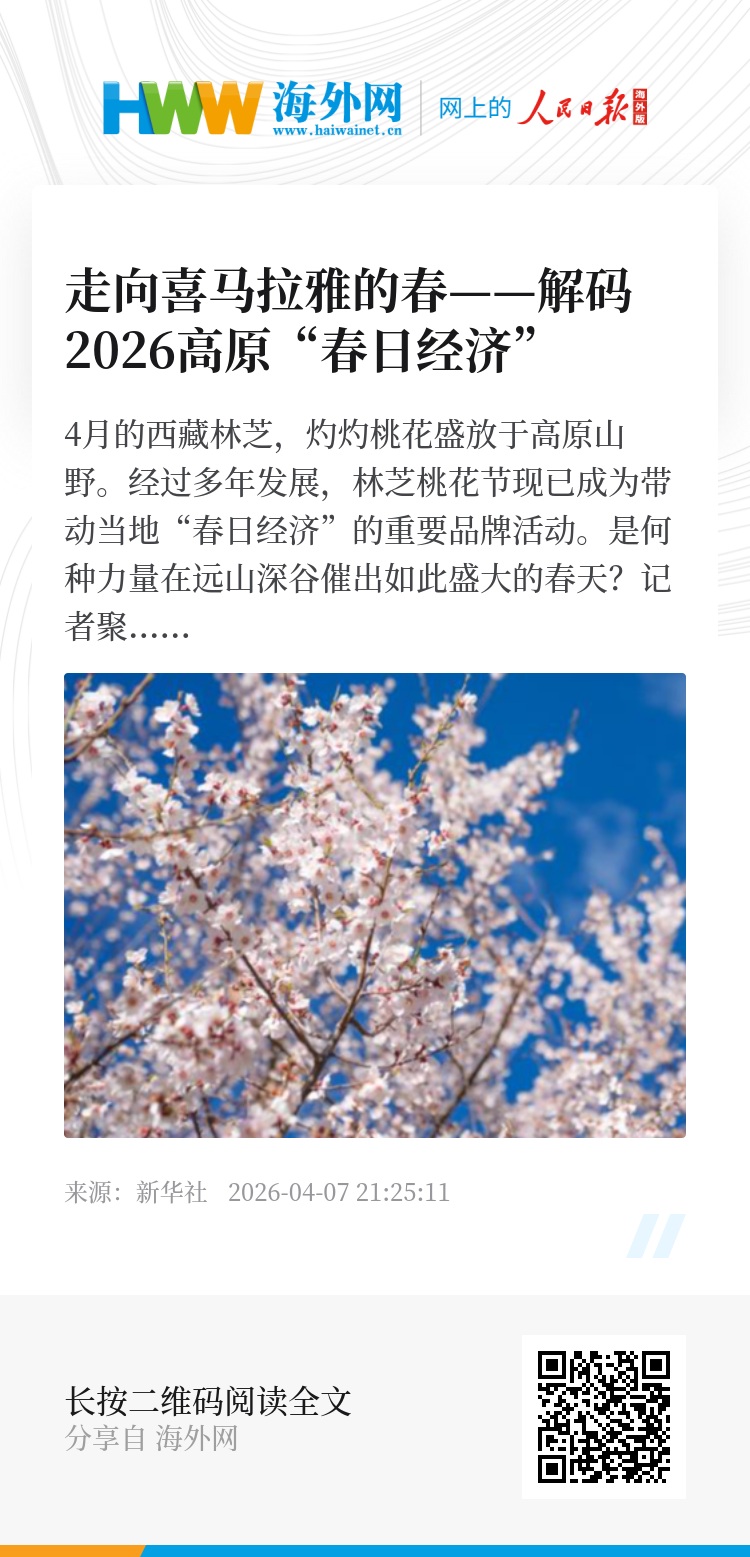 是何种力量在远山深谷催出如此盛大的春天?新华社记者聚焦高原“春日经济”的多元形态,通过一趟“山野、田园、花海”的旅程,展现喜马拉雅山下的人们以生态守护为根基、产业重构为路径、文旅融合为引擎,激活高原“春日经济”的新动能。