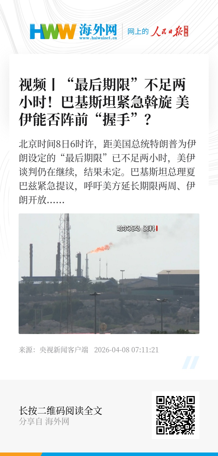 北京时间8日6时许,距美国总统特朗普为伊朗设定的“最后期限”已不足两小时,美伊谈判仍在继续,结果未定。巴基斯坦总理夏巴兹紧急提议,呼吁美方延长期限两周、伊朗开放霍尔木兹海峡两周,为外交斡旋创造空间。与此同时,以色列加大对伊打击力度,美以7日大规模袭击伊朗多地铁路、桥梁等民用设施,并数次袭击伊朗石油出口枢纽哈尔克岛。伊朗伊斯兰革命卫队向美以发动“真实承诺-4”行动第99波攻势。特朗普早前在社交媒体威胁伊朗称“今晚,整个文明将消亡”。伊朗方面强硬回应美方威胁,称将让美及其盟友付出沉重代价。中俄否决安理会涉霍尔木兹海峡决议,多国呼吁停止敌对行动。