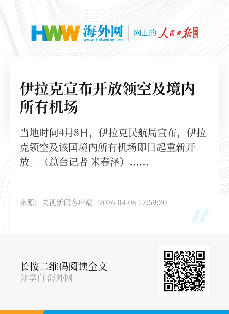 当地时间4月8日,伊拉克民航局宣布,伊拉克领空及该国境内所有机场即日起重新开放。(总台记者 米春泽)