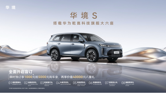 华境S领航科技品鉴会现场,新车正式开启全国预订。用户可通过华为乾崑APP、华境汽车小程序、华境汽车抖音账号等官方通道下订。限时下订可享受 1000 元抵 5000 元购车金,更可叠加价值40000元的八重专属礼遇。伴随产品发布,华境S首批 158 家体验中心已整装待发,强势覆盖全国 131城,更多门店正持续点亮,以专业、贴心、高效的服务全程陪伴。