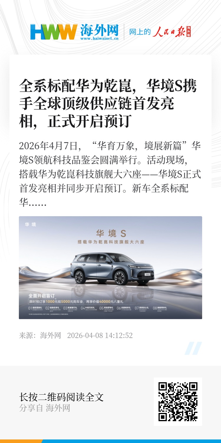 2026年4月7日,“华育万象,境展新篇”华境S领航科技品鉴会圆满举行。活动现场,搭载华为乾崑科技旗舰大六座——华境S正式首发亮相并同步开启预订。新车全系标配华为乾崑智能解决方案,上市即支持城区领航辅助,将于今年上半年正式上市。上汽通用五菱始终坚守“人民需要什么,五菱就造什么”的品牌理念,精准洞察中国家庭出行痛点与核心需求,携手华为乾崑、宁德时代、宝钢等顶级供应链伙伴,共同为用户打造超越期待的高品质智能出行体验。