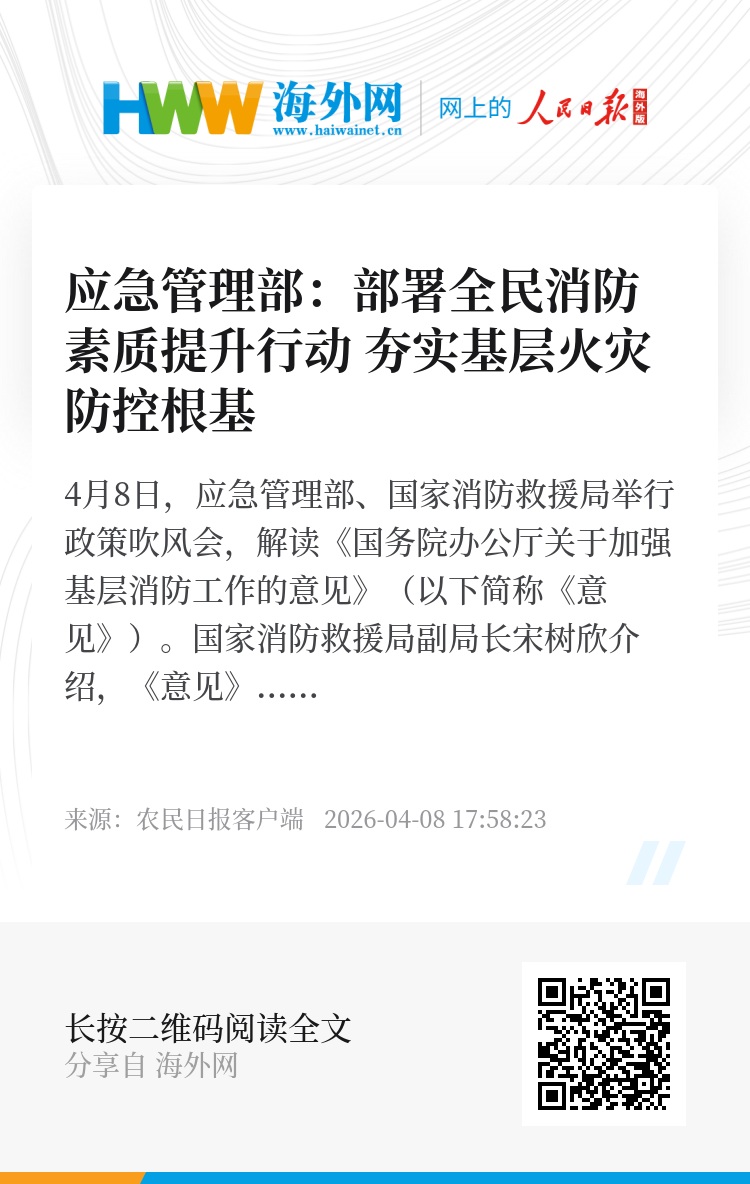 4月8日,应急管理部、国家消防救援局举行政策吹风会,解读《国务院办公厅关于加强基层消防工作的意见》(以下简称《意见》)。