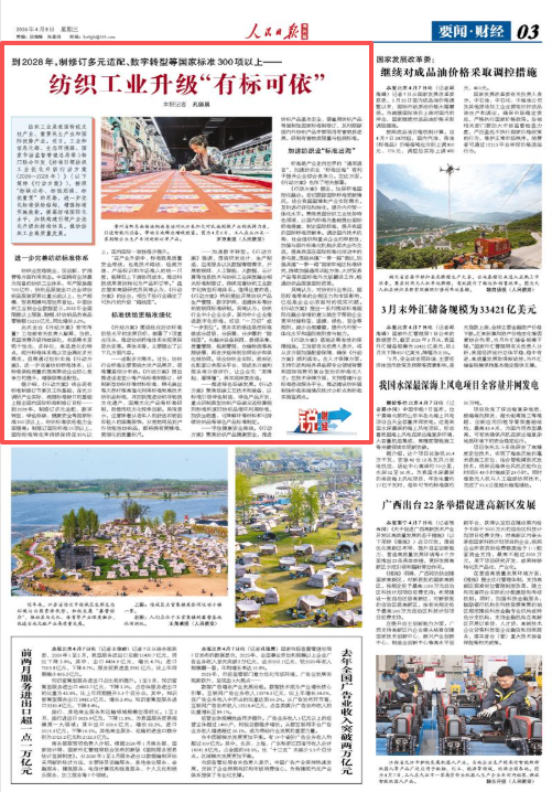 ——适配多元需求。过去,纺织行业标准主要围绕大宗产品展开,很难覆盖细分市场。《行动方案》提出推进适老宜小等产品标准制修订,研制新型纺织纤维材料标准、棉毛麻丝等天然纤维高值化利用标准和高技术纺织品标准,并加快推进纺织非物质文化遗产、国潮文化产品等标准研制,助推传统文化传承创新。吴琦表示,这意味着从老年人的舒适衣物到年轻人的国潮服饰,从宠物用品到户外功能性纺织品,都将拥有更精准、更细化的质量标尺。