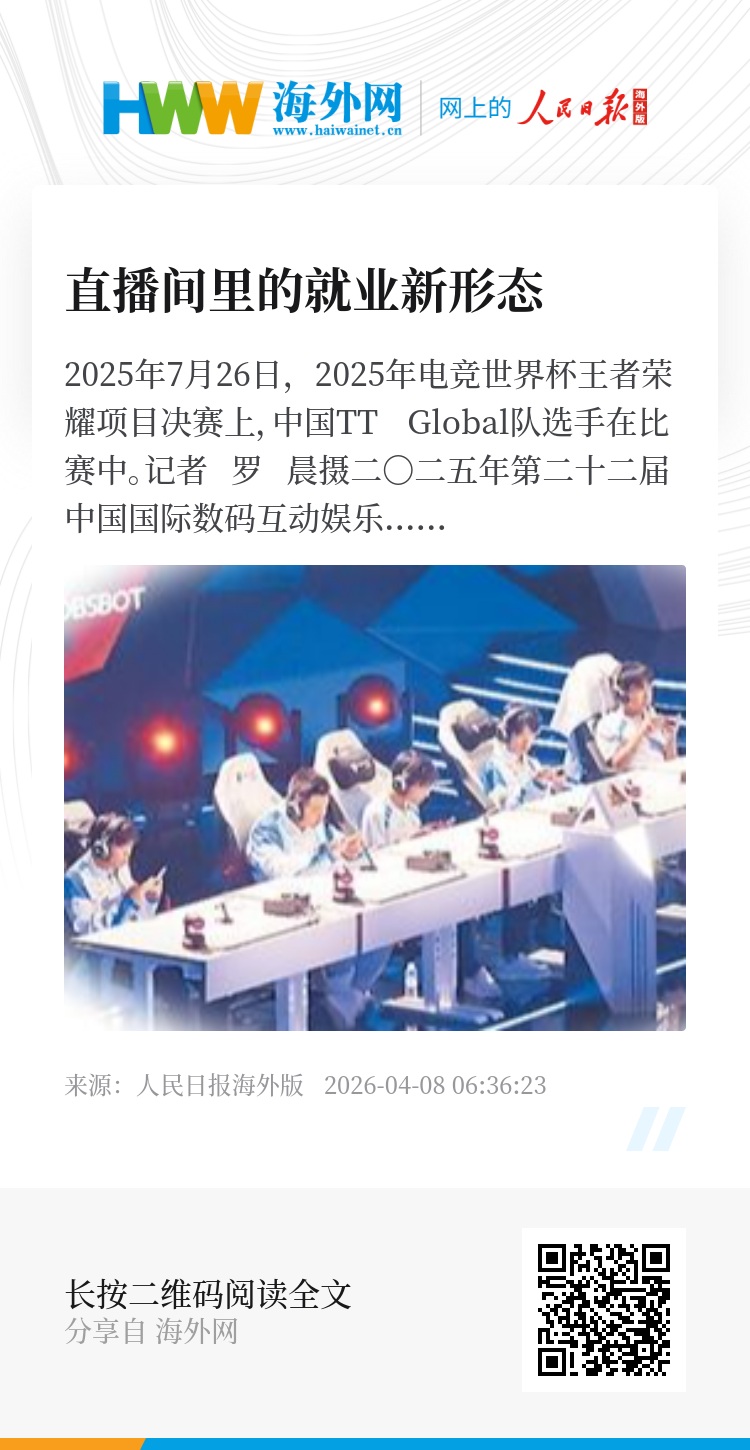 电竞通过与文旅、科技等领域不断融合,也催生着复合型新岗位——从赛事运营、内容创作到数据分析、解说主持,再到电竞场馆运营及衍生品开发等,形成了覆盖上下游的百亿元级就业生态。