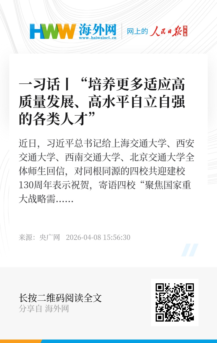 “培养更多适应高质量发展、高水平自立自强的各类人才。”今年是“十五五”开局之年,站在新的历史起点上,面对经济社会高质量发展和高水平自立自强的时代要求,我们广大科教工作者要坚持以科技创新、国家战略需求为牵引,努力实现科技自主创新和人才自主培养良性互动,为强国建设、民族复兴提供更多人才储备和智力支撑。