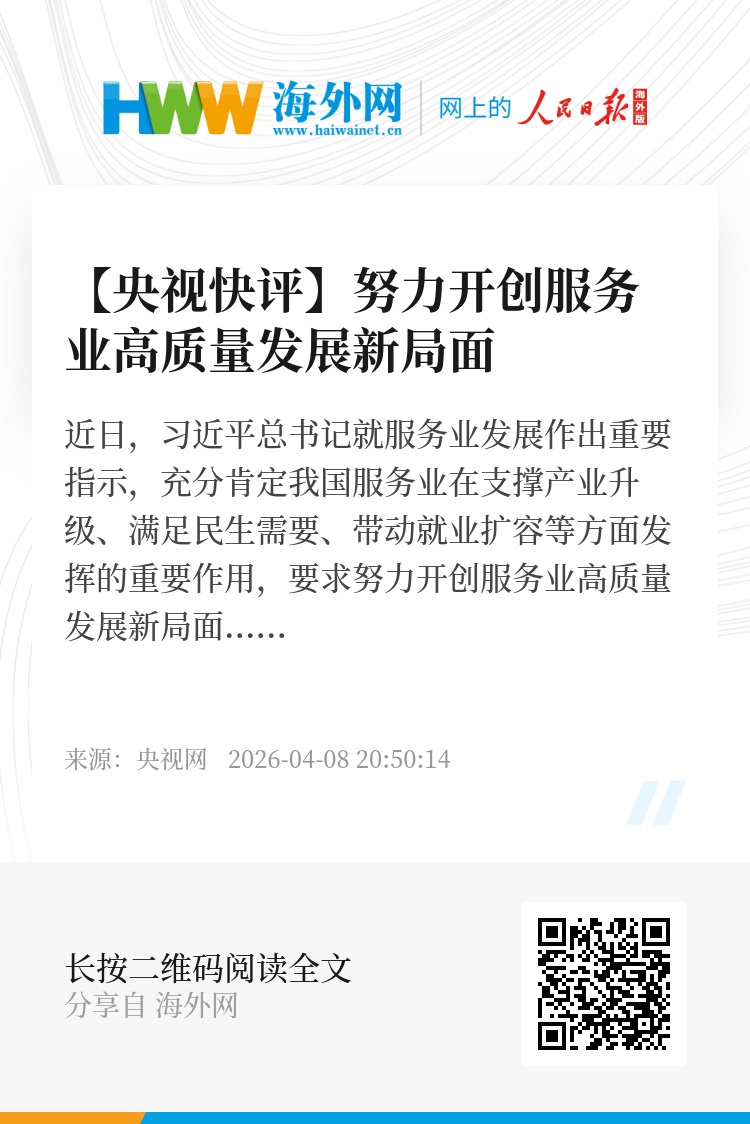 目标已定,重在落实。各级党委和政府要深入学习实践习近平经济思想,自觉从战略和全局的高度深化对服务业的认识,深入把握产业演进趋势,进一步增强政策支持的针对性有效性,为服务业发展营造良好环境,努力开创服务业高质量发展新局面,让服务业高质量发展成果更多更公平惠及全体人民。(央视评论员)