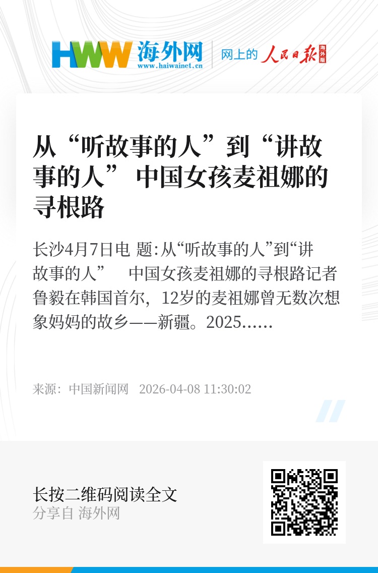 中新网长沙4月7日电 题:从“听故事的人”到“讲故事的人” 中国女孩麦祖娜的寻根路