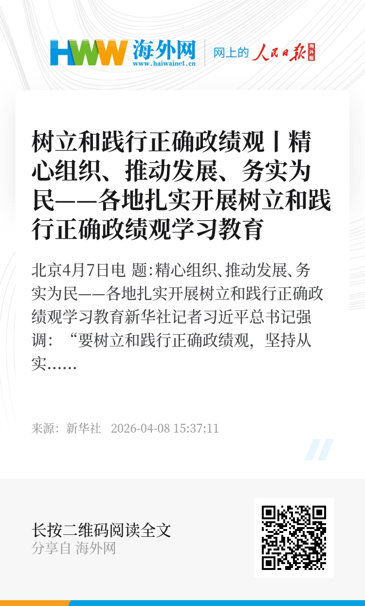 新华社北京4月7日电 题:精心组织、推动发展、务实为民——各地扎实开展树立和践行正确政绩观学习教育