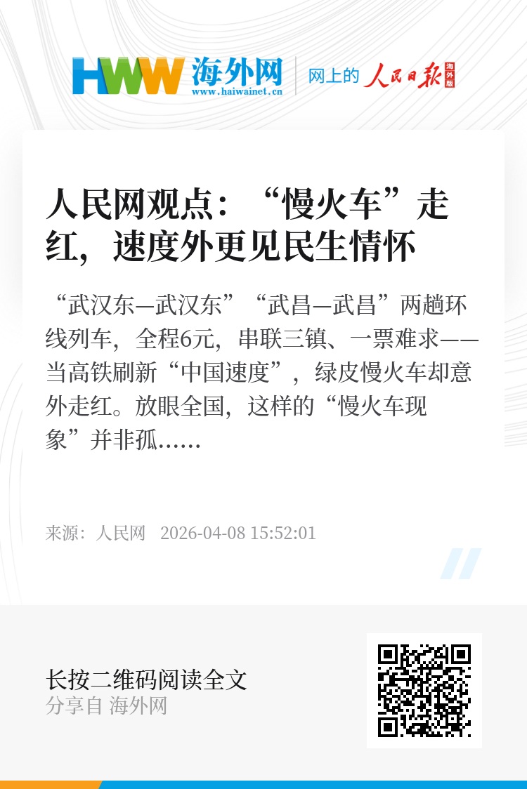 “武汉东—武汉东”“武昌—武昌”两趟环线列车,全程6元,串联三镇、一票难求——当高铁刷新“中国速度”,绿皮慢火车却意外走红。放眼全国,这样的“慢火车现象”并非孤例,其走红背后,折射出大众对烟火温情的向往、对公共服务的认可,更彰显“快慢相宜”的中国式发展智慧。