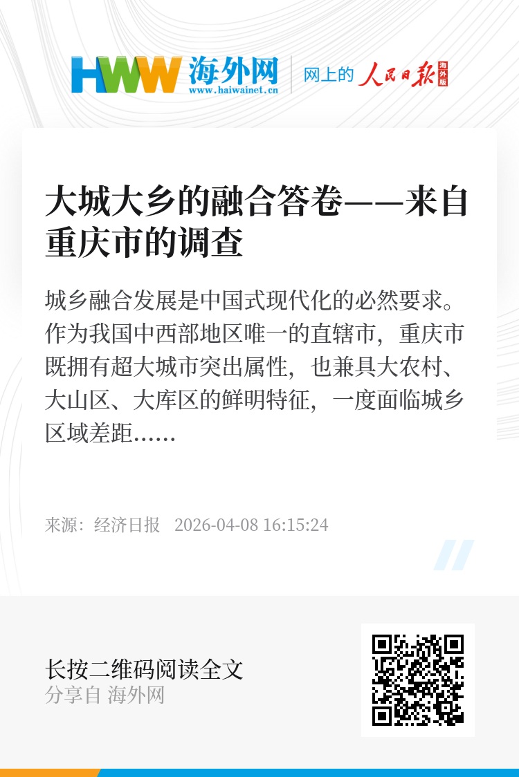 城乡融合的核心目的是打破城乡二元结构,让广大农民共享改革发展成果。近年来,重庆学习运用“千万工程”经验,实施了千万亩高标准农田改造提升、千个宜居宜业和美乡村示范创建、千万农民增收致富促进、千亿级优势特色产业培育“四千行动”,补齐乡村教育、医疗、就业、住房等基础性、普惠性、兜底性民生短板,农民获得感、幸福感、安全感不断提升。