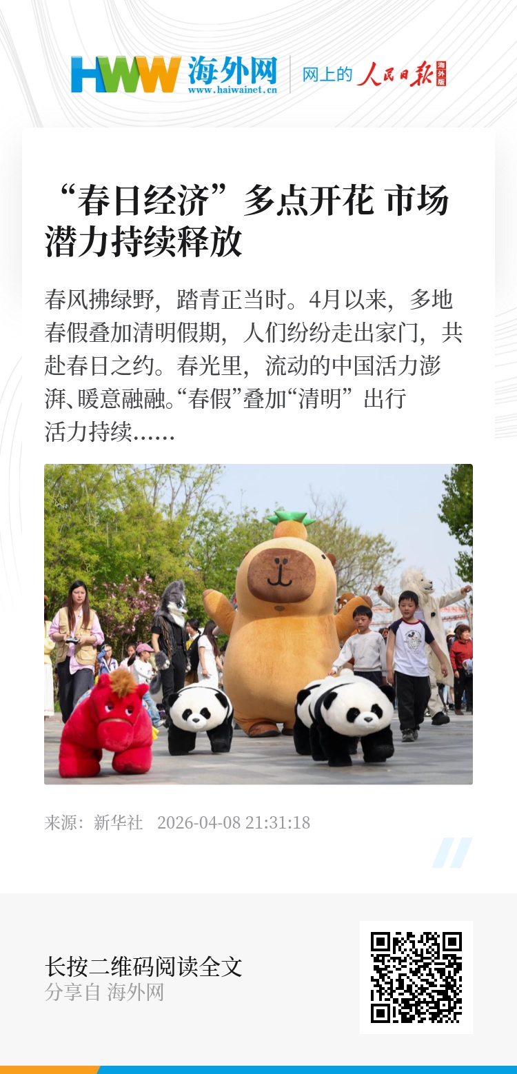 春风拂过,生机涌动。多元的春日体验、创新的消费场景,正以更丰富的姿态拥抱春天,让“春日经济”活力四射、蓬勃向上。