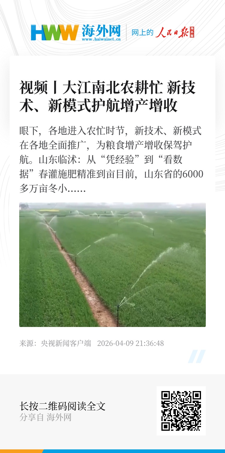 眼下,各地进入农忙时节,新技术、新模式在各地全面推广,为粮食增产增收保驾护航。
