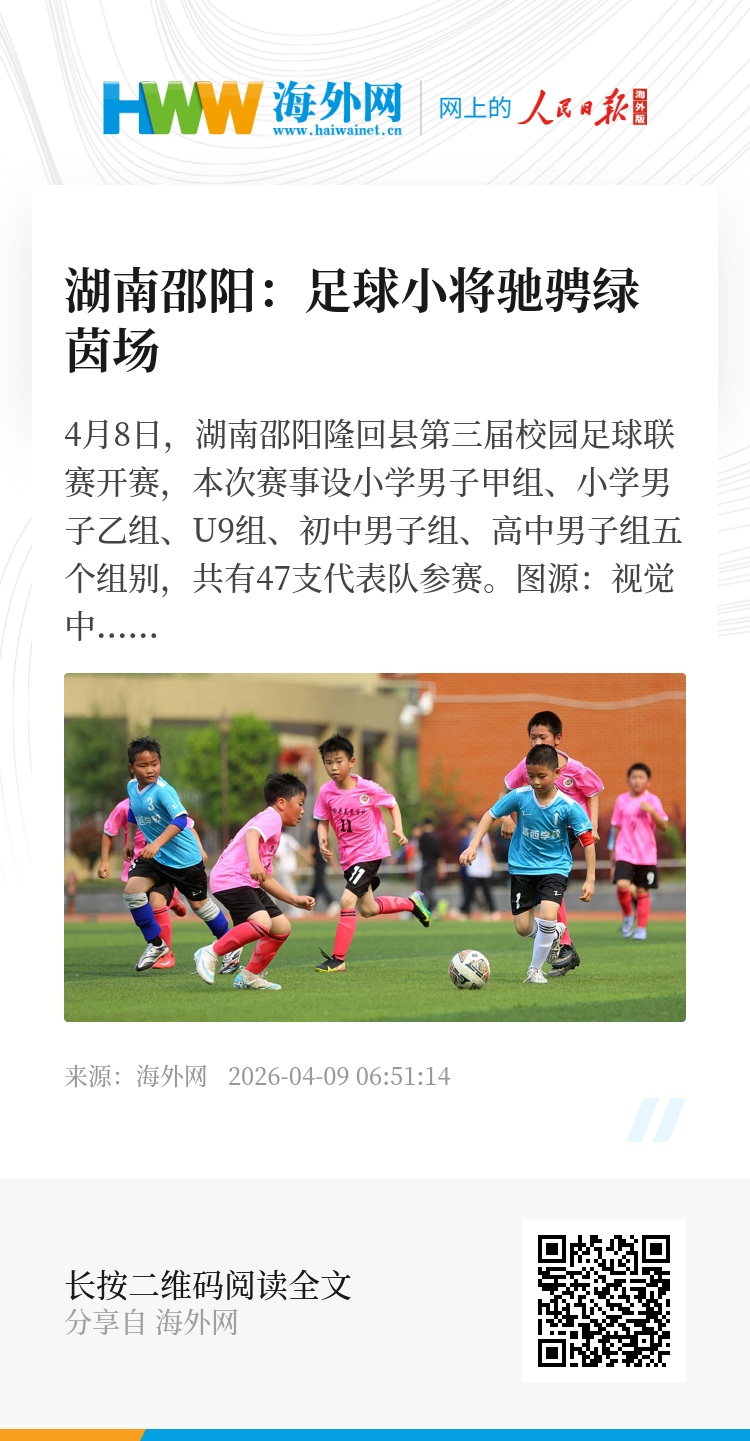 32944059,.湖南邵阳:足球小将驰骋绿茵场,.2026-04-09 06:51:14,.204441,.张荣耀、卢思宇