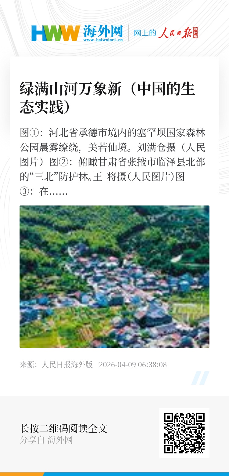 新时代以来,中国以前所未有的力度推进生态文明建设,绿色版图不断延展。从塞罕坝的百万亩林海,到库布其的沙漠绿洲;从实施十年禁渔让长江水生生物资源总体恢复向好,到首批5个国家公园带动数万人家门口就业;从“双碳”目标的庄严承诺,到全球环境治理的中国担当——一场广泛而深刻的生态实践,正在神州大地上书写。