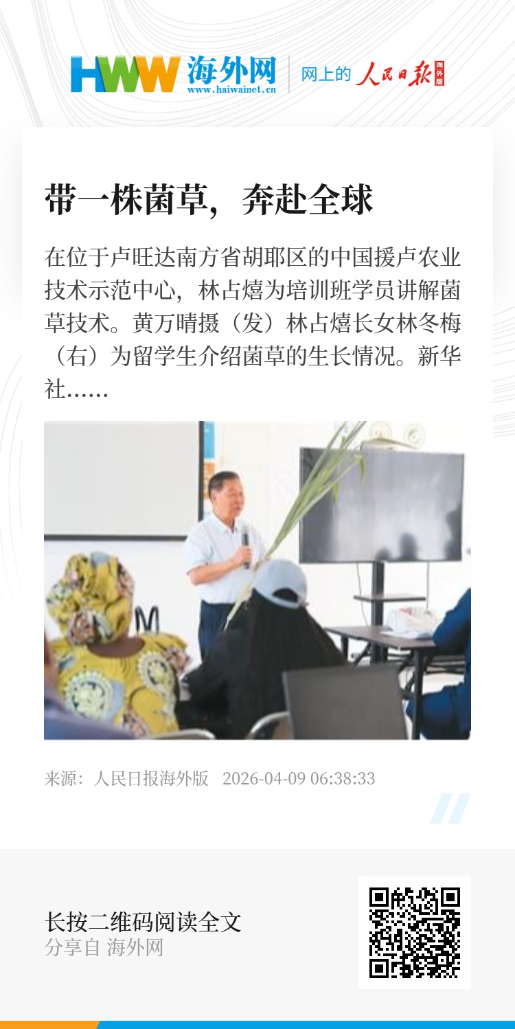从福建山村的艰难破土,到全球范围的绿意盎然,菌草的故事,是林占熺和团队数十年如一日的坚守,是一项技术从无到有、从弱到强的创新史诗,更是一个负责任大国通过科技合作,与世界分享发展机遇、共谋人类福祉的生动实践。这株“中国草”的环球之旅仍在继续,它所承载的绿色发展梦想与人类命运共同体的理念,正随风播撒,生生不息。(本报记者 刘发为)