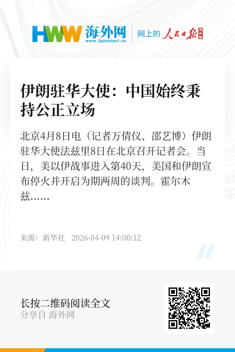 新华社北京4月8日电(记者万倩仪、邵艺博)伊朗驻华大使法兹里8日在北京召开记者会。