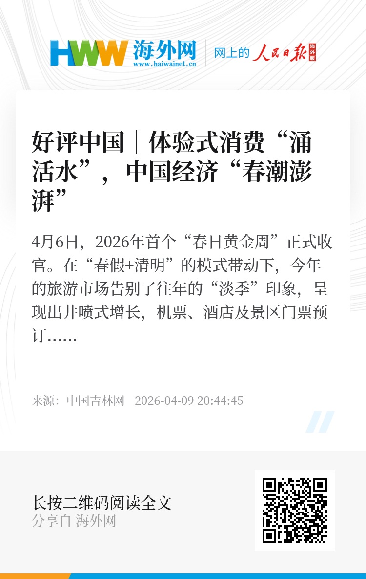 体验式消费是消费升级的生动注脚,更是中国经济韧性与活力的直接体现。当体验的“活水”持续涌动,当供需双向奔赴形成良性循环,必将点燃消费热情、激活内需潜力,让中国经济的“春潮”更加澎湃,为高质量发展注入源源不断的动力。(丁铁)
