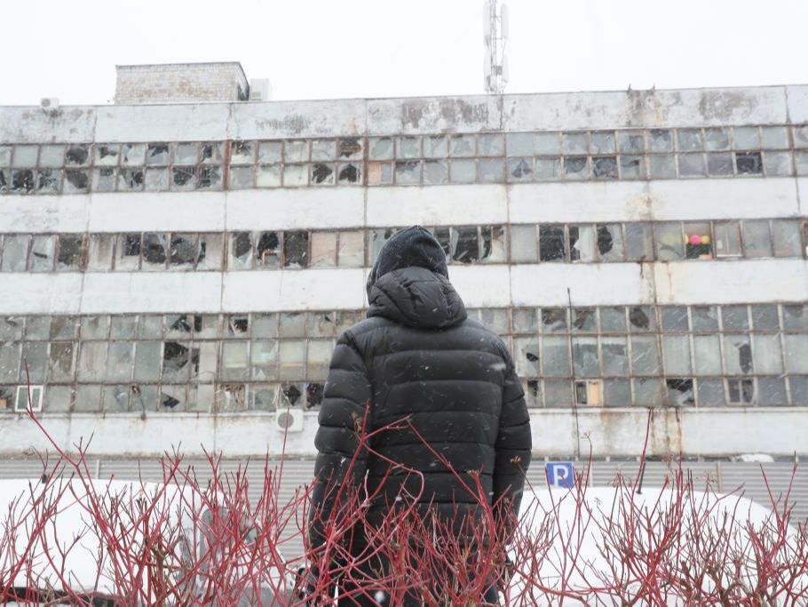 2026年1月9日,一男子在乌克兰首都基辅市第聂伯区查看空袭中受损的建筑。新华社记者李东旭摄