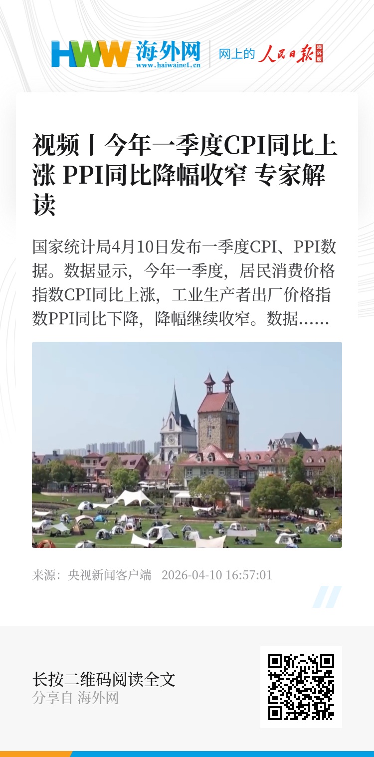 国家统计局4月10日发布一季度CPI、PPI数据。数据显示,今年一季度,居民消费价格指数CPI同比上涨,工业生产者出厂价格指数PPI同比下降,降幅继续收窄。