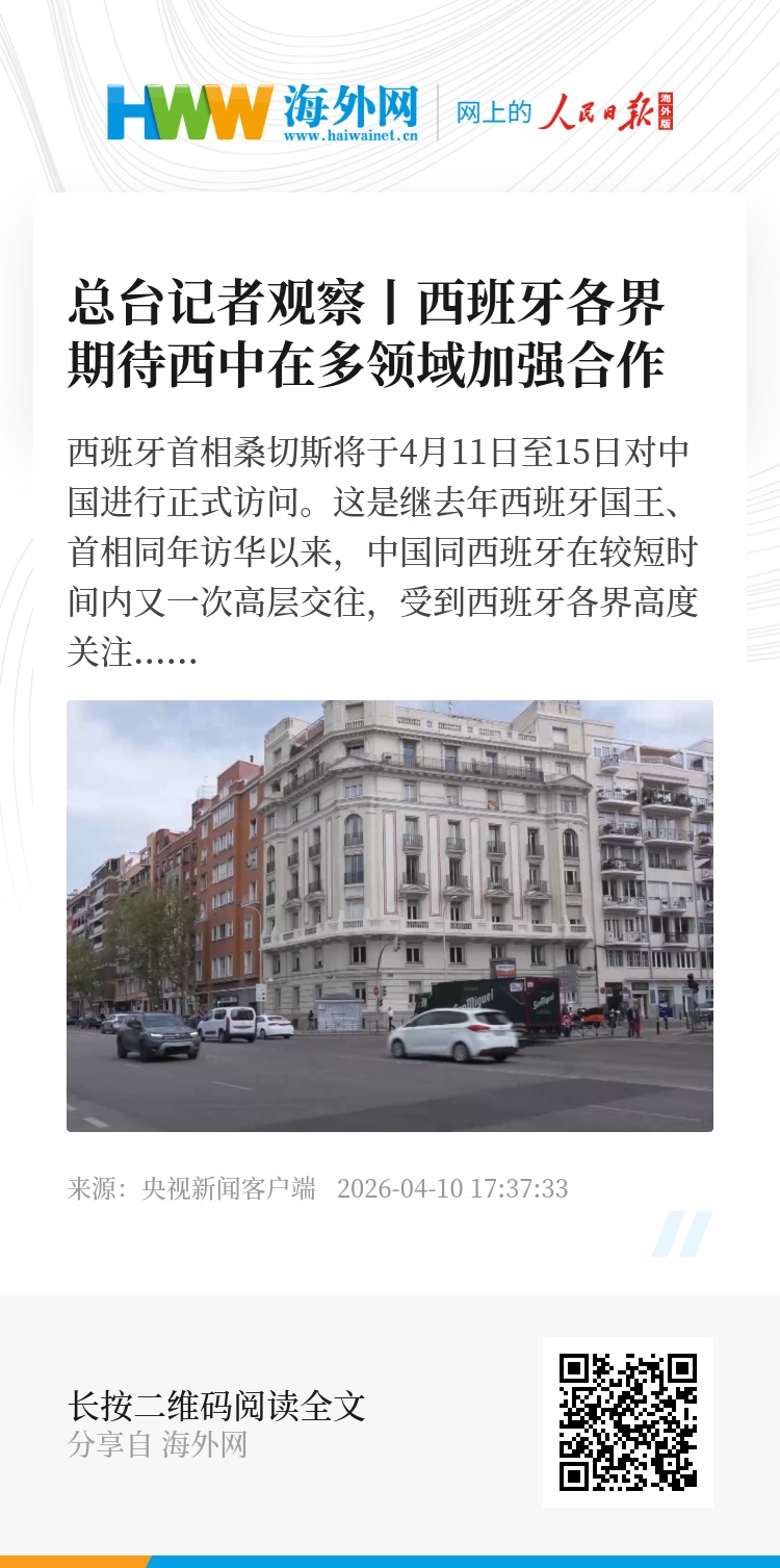 总台记者 廖军华:作为四年内的第四次访华,桑切斯首相此行被外界普遍视为在当前复杂国际形势下,进一步巩固中西关系、加强中欧沟通的重要契机。西班牙各界期待双方能够在经贸合作、应对气候变化以及全球治理等领域,释放出更多务实合作信号。