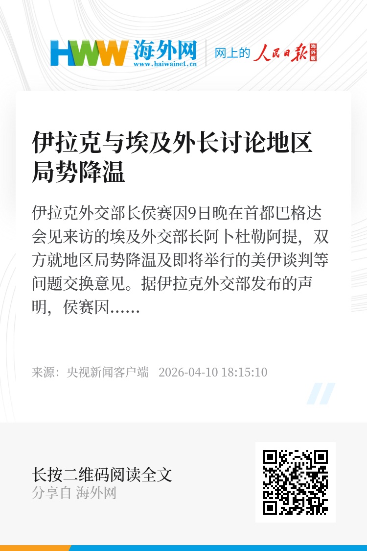 另据埃及外交部声明,阿卜杜勒阿提在会见时表示,强烈谴责一切针对阿拉伯海湾国家、伊拉克及约旦的袭击。各方应以美伊共同宣布停火为契机,持续推动局势缓和,坚持外交对话与政治解决。