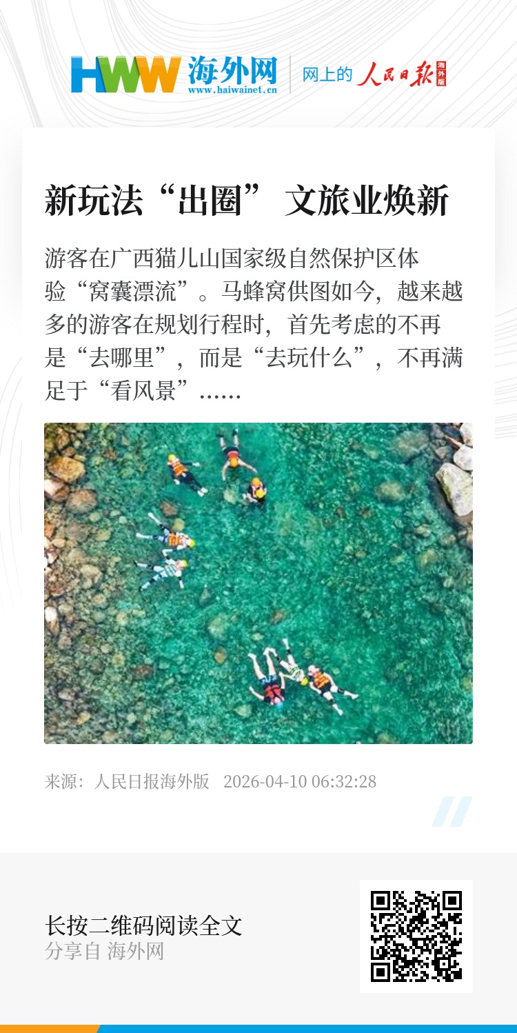 不用穿越惊涛骇浪,也无需挑战极限,顺着山间小溪慢慢漂下去,享受被水轻轻推着走的松弛感。广西猫儿山国家级自然保护区的“窝囊漂流”让游客尽享轻松之旅。入住四川稻城亚丁星空民宿,伴雪山星河入眠;在上海崇明岛西沙湿地,体验独木泛舟红杉林;探访安徽合肥庐阳区科学岛,打卡人造太阳,开启硬核科技研学之旅;在山东曹县安蔡楼汉服基地,千款汉服任你挑选;在西藏拉萨夜游拉萨河,观赏特色水上演艺;在海南陵水黎族自治县住进海上民宿,体验疍家文化……此次发布的100个新玩法体现了旅游与自然、人文、科技等深度融合,呈现出复合消费的趋势。这些新玩法打破了产业边界,延长消费链条,带来更高的产业附加值。