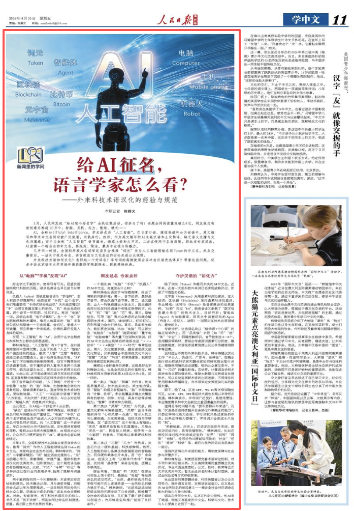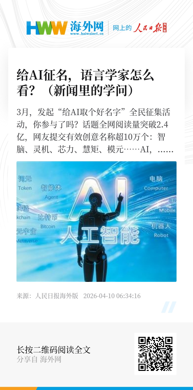 语言在使用中生长,名字在约定中流传。当AI有了地道、响亮又有温度的中文名,科学与文化、技术与人心便真正走到了一起。(本报记者 陈静文)
