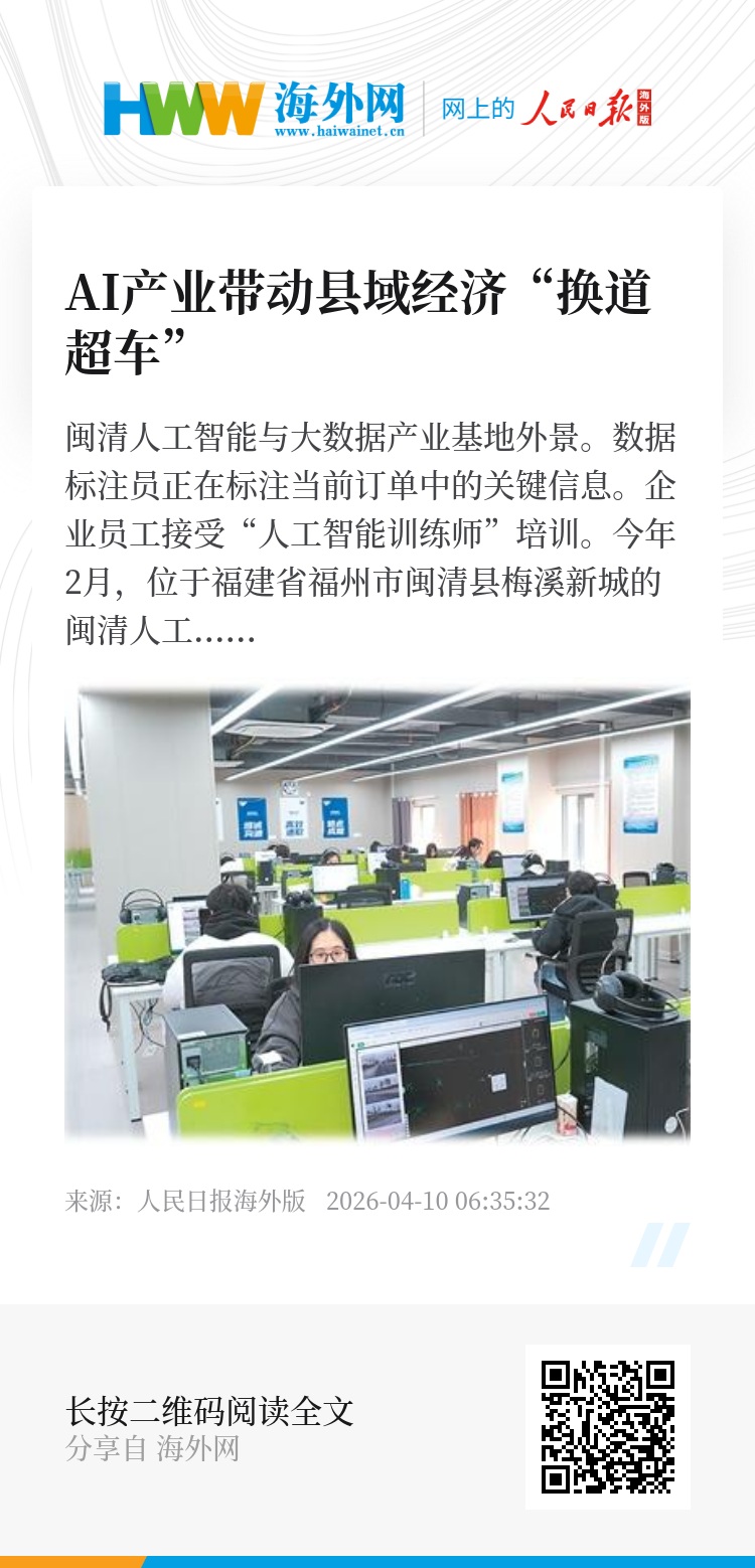 “大城市的土地、人力成本高,AI产业竞争日趋白热化。而闽清能为企业提供从算力、电力到资金的配套服务,让生产更为高效。”一家入驻闽清人工智能与大数据产业基地企业的相关负责人认为,AI技术正从研发走向产业落地,进入县域成了一种必然选择。“过去,企业更倾向于把算力资源集中在一线城市,但这两年思路变了。因为县域拥有丰富、真实的产业应用场景,是AI赋能实体经济的最佳试验场。”