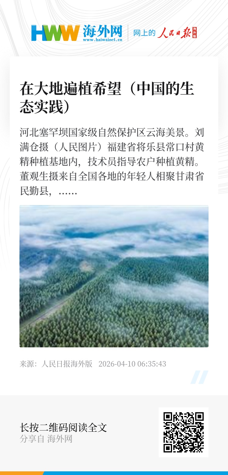 这些数据的背后,是无数种树人、护林人日复一日的坚守,也离不开亿万普通人的线上线下参与,这是“绿水青山就是金山银山”理念在中国大地上落地生根最生动的体现。