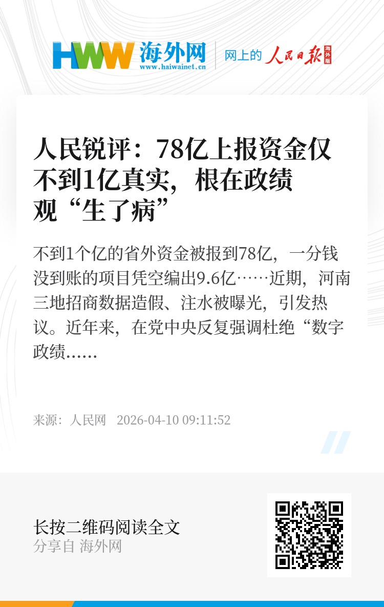 政绩从来不是“纸上数字”,而是“脚下实绩”。剥去“78亿”的幻影,留下的真实资金,虽不耀眼,却也是实干结果。校准政绩观偏差,把基层干部的“很无奈”变成“有底气”,我们才能以实干破局、以实绩作答,更好造福人民、助力国家发展。(执笔:欧阳金雨)