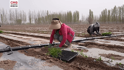 随着气温逐渐回升,位于塔克拉玛干沙漠北缘的新疆拜城县,农户们抢抓墒情,全面展开7万亩辣椒的移栽工作。