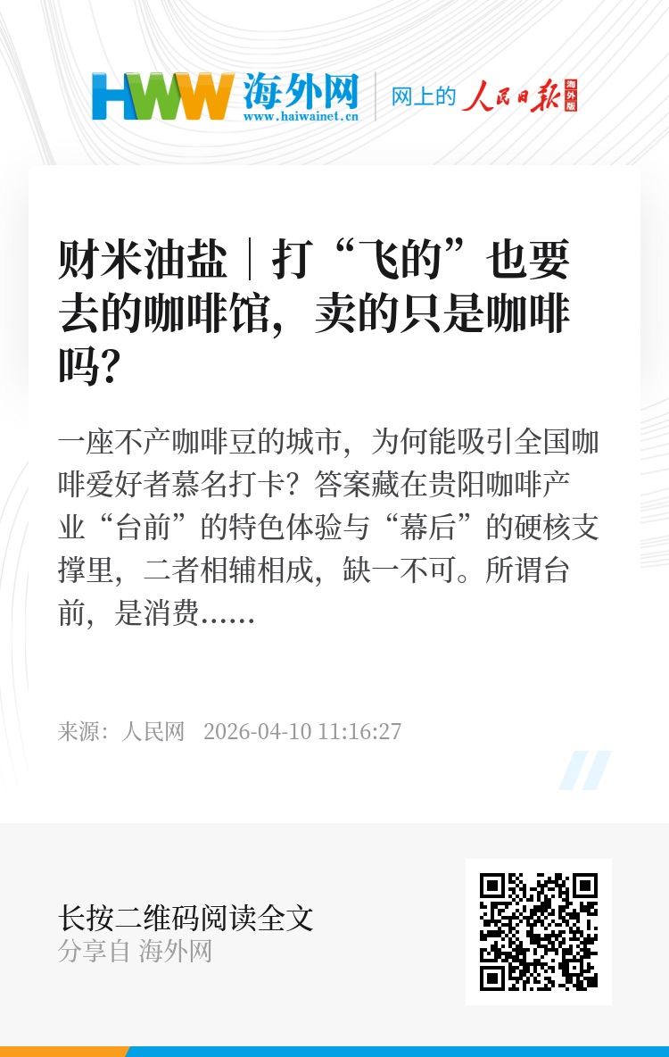 今年的政府工作报告中,首次提出“培育‘中国服务’品牌”,同时明确要求扩能提质服务业。恰逢全国服务业大会4月7日至8日召开,服务业发展迎来新的机遇。可以预见,未来将有更多如“贵阳咖啡”一般的特色服务业态持续涌现。
