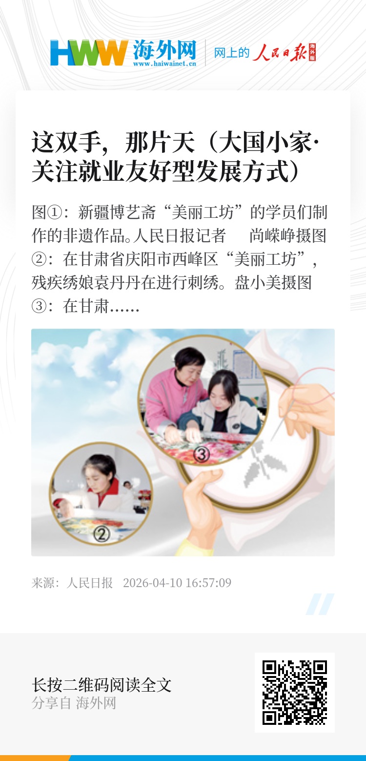 对于贾莉而言,那一根根丝线,不仅织就了娟秀图案,更缝补了曾经破碎的自信。从自卑躲避到自信主事,从伸手向家里要钱到能为家庭经济做贡献,就在这指尖的起落之间,“美丽工坊”托起残疾妇女“稳稳的幸福”。(记者 曾亦辰 尚嵘峥,盘小美参与采写)
