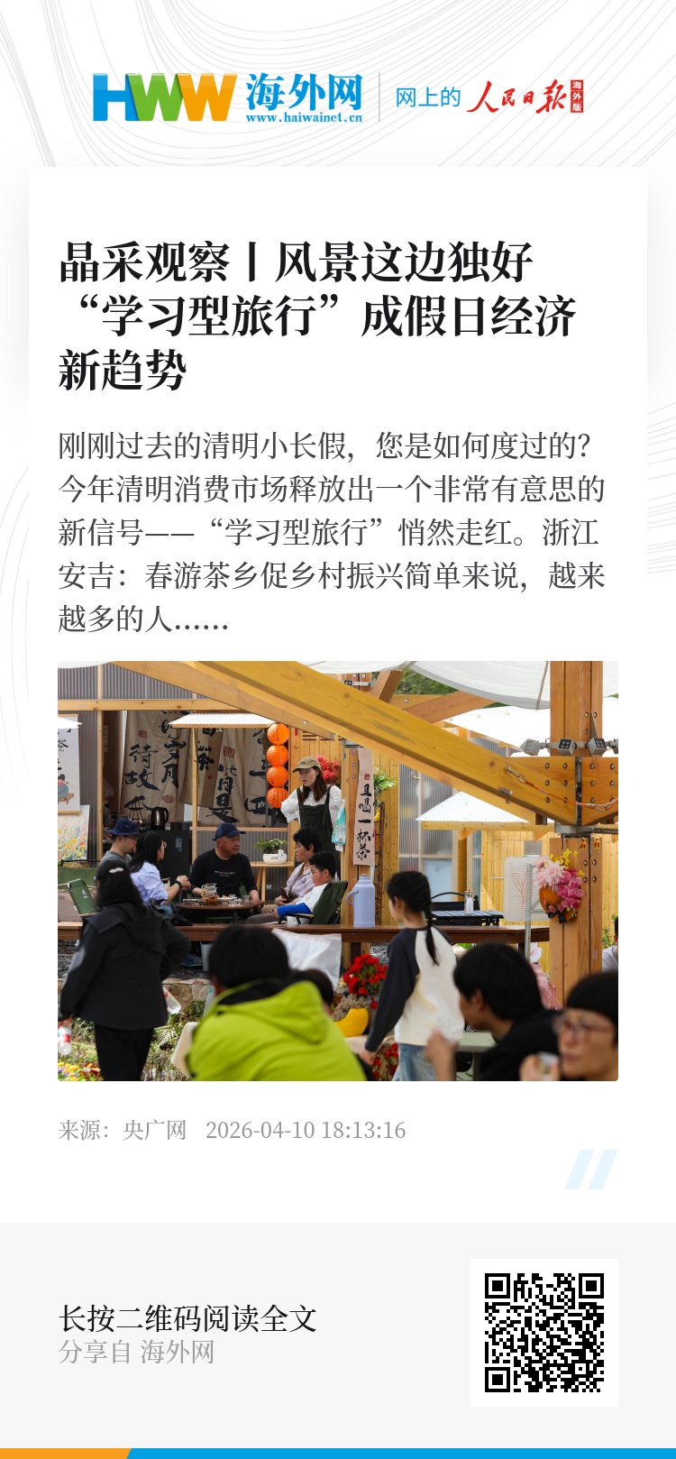 刚刚过去的清明小长假,您是如何度过的?今年清明消费市场释放出一个非常有意思的新信号——“学习型旅行”悄然走红。