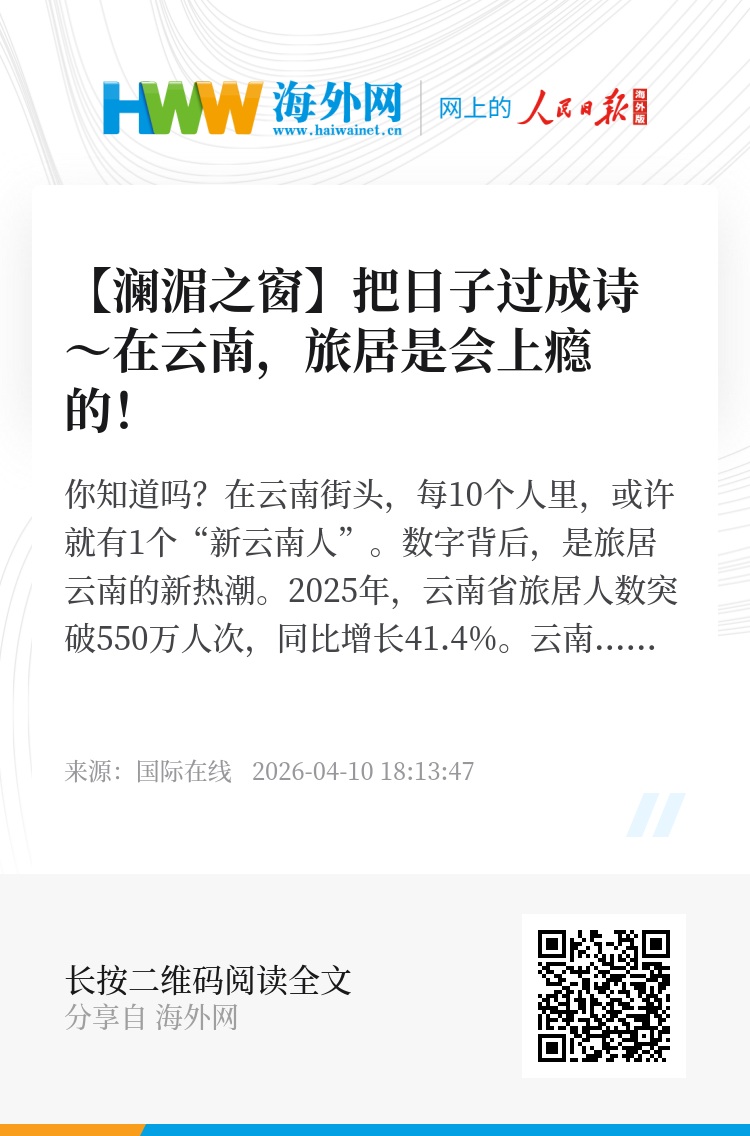 你知道吗?在云南街头,每10个人里,或许就有1个“新云南人”。数字背后,是旅居云南的新热潮。2025年,云南省旅居人数突破550万人次,同比增长41.4%。云南旅游正从走马观花的观光游,向深度沉浸的生活式旅居转型。