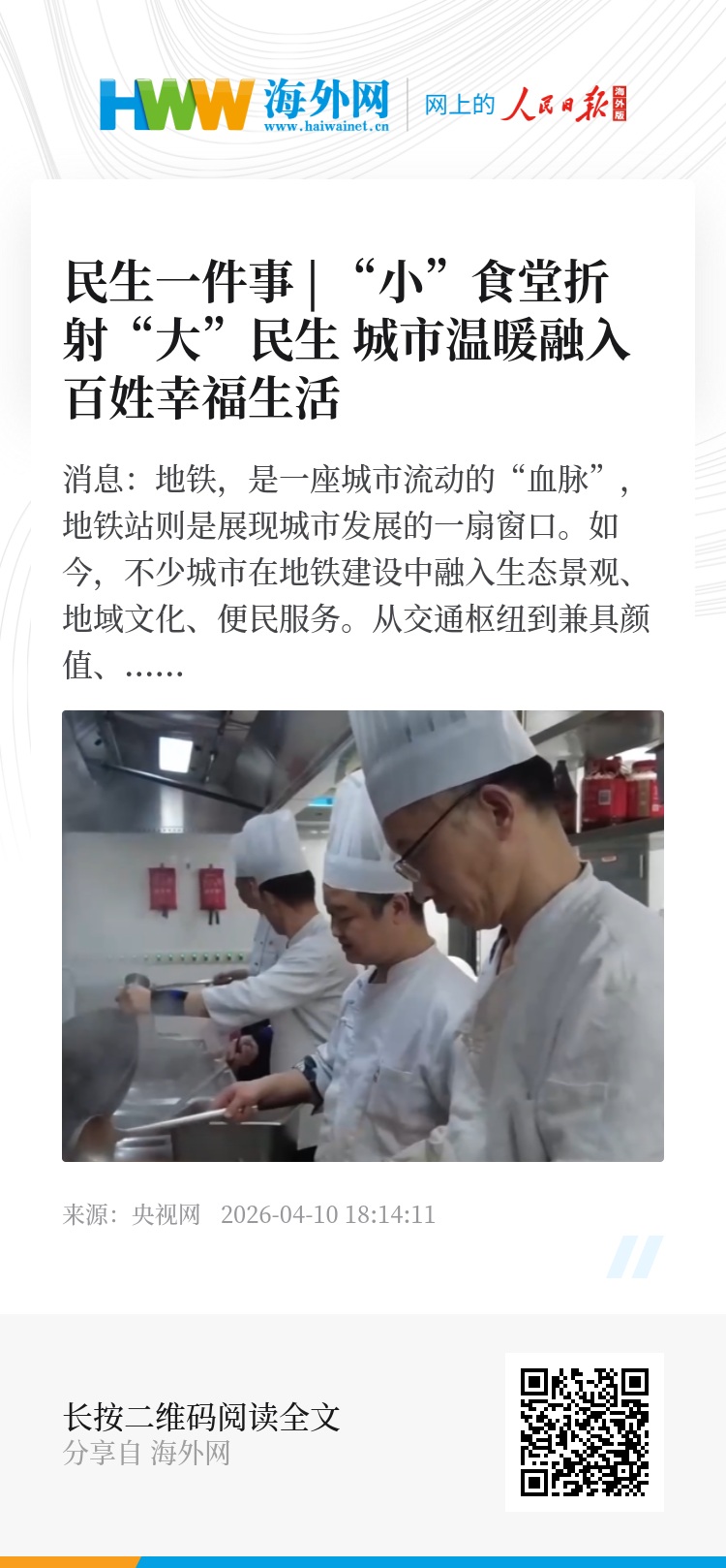 央视网消息:地铁,是一座城市流动的“血脉”,地铁站则是展现城市发展的一扇窗口。如今,不少城市在地铁建设中融入生态景观、地域文化、便民服务。从交通枢纽到兼具颜值、文化与温度的城市公共空间,越来越多的地铁站厅化身“城市会客厅”。民生一件事,今天就一起到江苏苏州的地铁去看看。社区大食堂被搬进了地铁站,吸引了众多居民和通勤族。