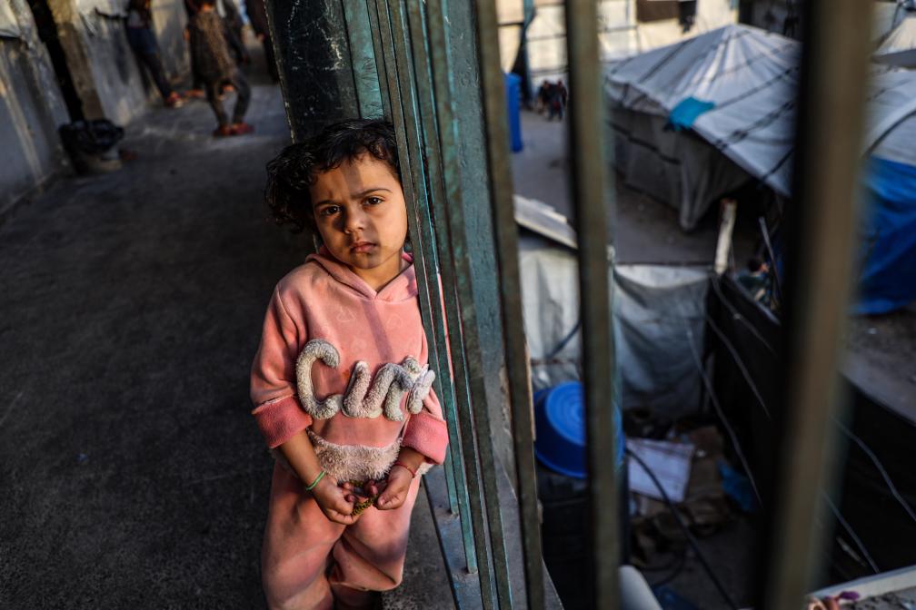 这是4月5日在加沙城一处避难所拍摄的流离失所的巴勒斯坦儿童。新华社发(里泽克·阿卜杜勒贾瓦德摄)