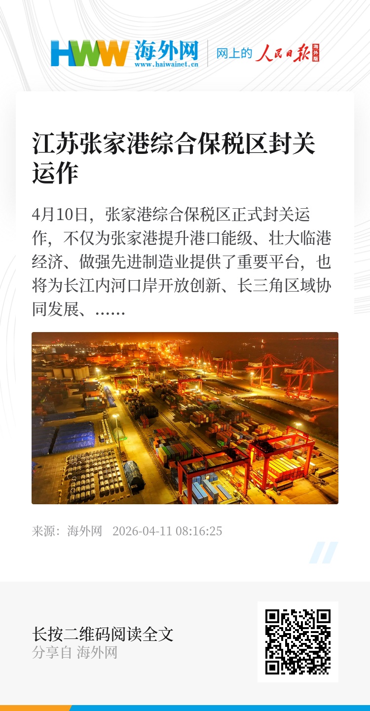 4月10日,张家港综合保税区正式封关运作,不仅为张家港提升港口能级、壮大临港经济、做强先进制造业提供了重要平台,也将为长江内河口岸开放创新、长三角区域协同发展、江海联动高效运转提供有力支撑。图源:视觉中国