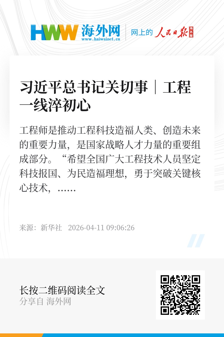 “希望全国广大工程技术人员坚定科技报国、为民造福理想,勇于突破关键核心技术,锻造精品工程,推动发展新质生产力”,习近平总书记对广大工程技术人员提出殷切期望。