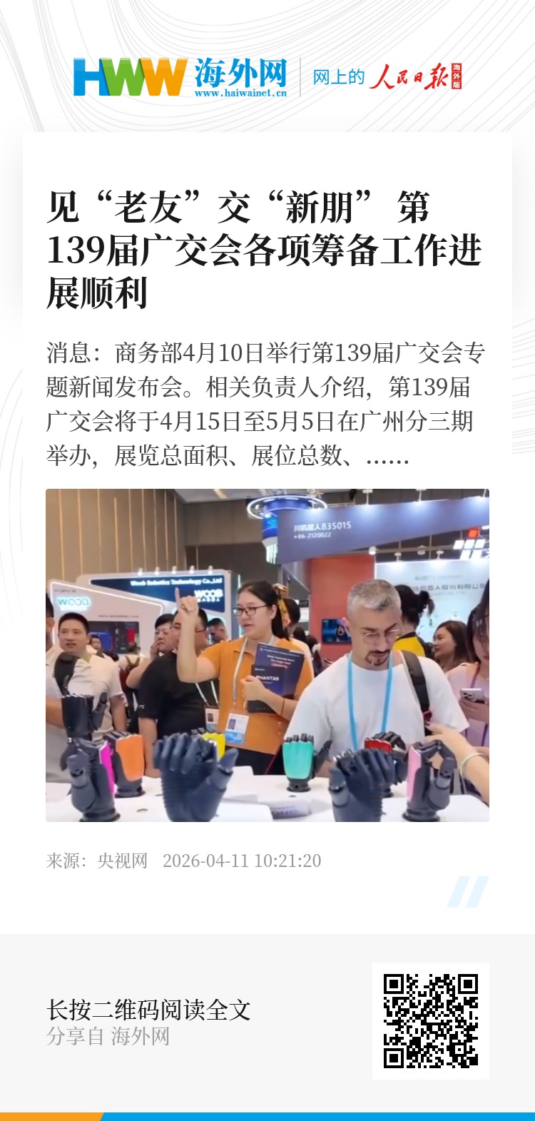 央视网消息:商务部4月10日举行第139届广交会专题新闻发布会。相关负责人介绍,第139届广交会将于4月15日至5月5日在广州分三期举办,展览总面积、展位总数、参展企业数均超往届水平。