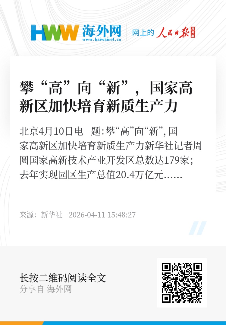 新华社北京4月10日电 题:攀“高”向“新”,国家高新区加快培育新质生产力