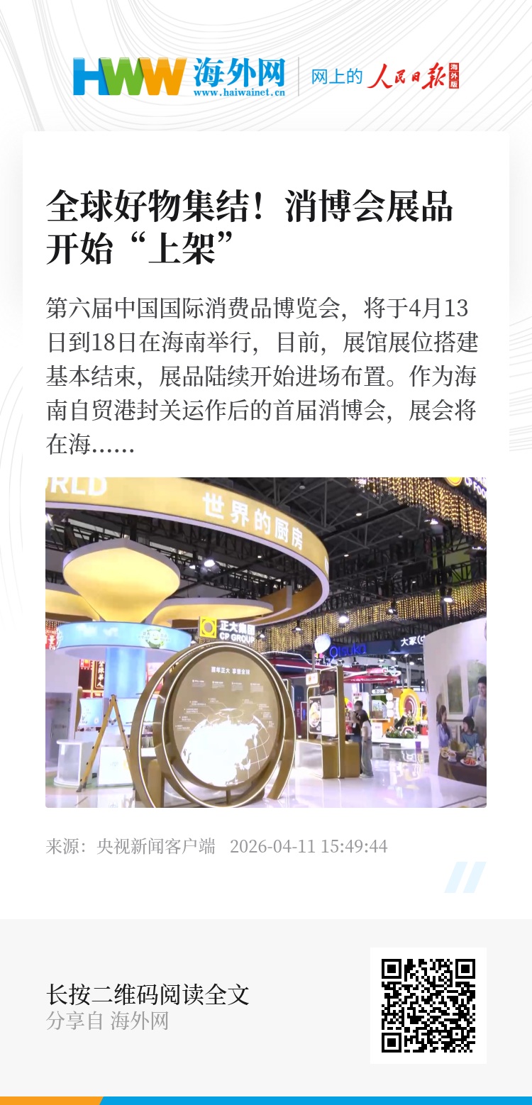 第六届中国国际消费品博览会,将于4月13日到18日在海南举行,目前,展馆展位搭建基本结束,展品陆续开始进场布置。
