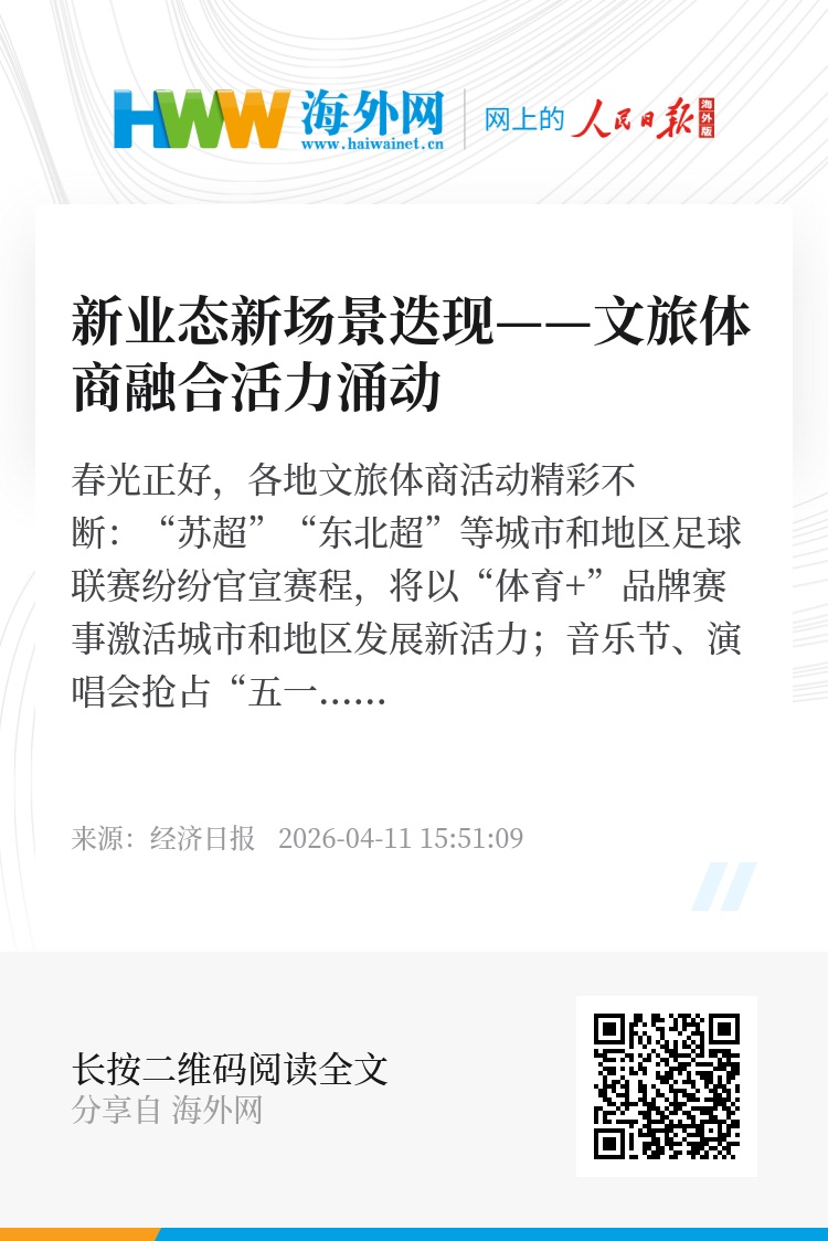 春光正好,各地文旅体商活动精彩不断:“苏超”“东北超”等城市和地区足球联赛纷纷官宣赛程,将以“体育+”品牌赛事激活城市和地区发展新活力;音乐节、演唱会抢占“五一档”,期待奏响假日经济新乐章……当“为一场赛事赴一座城”“为一场演出解锁一座城”渐成消费新常态,文旅体商融合发展潜力正加速释放。