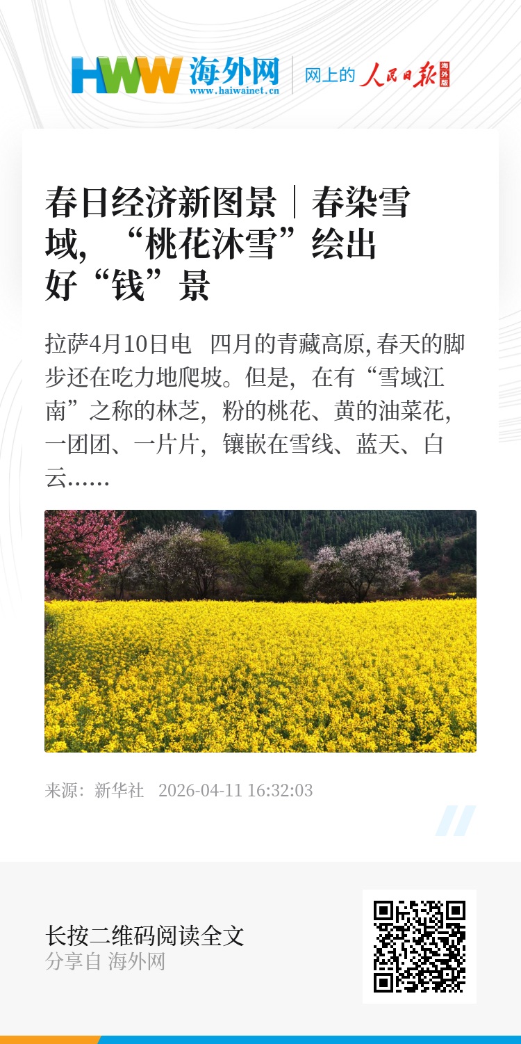 从踏雪徒步放牧的沉浸式体验,到云雾茶香溢出深闺的致富故事;从高原特色物产走出深山,到“桃花经济”延伸至全年,高原春日正从单一赏花向文旅融合、农旅共生的全新图景加速转变。坚守高原的农牧民和奔赴远方的旅行者,双向奔赴、彼此成就,共同唤醒了这场烂漫春光。