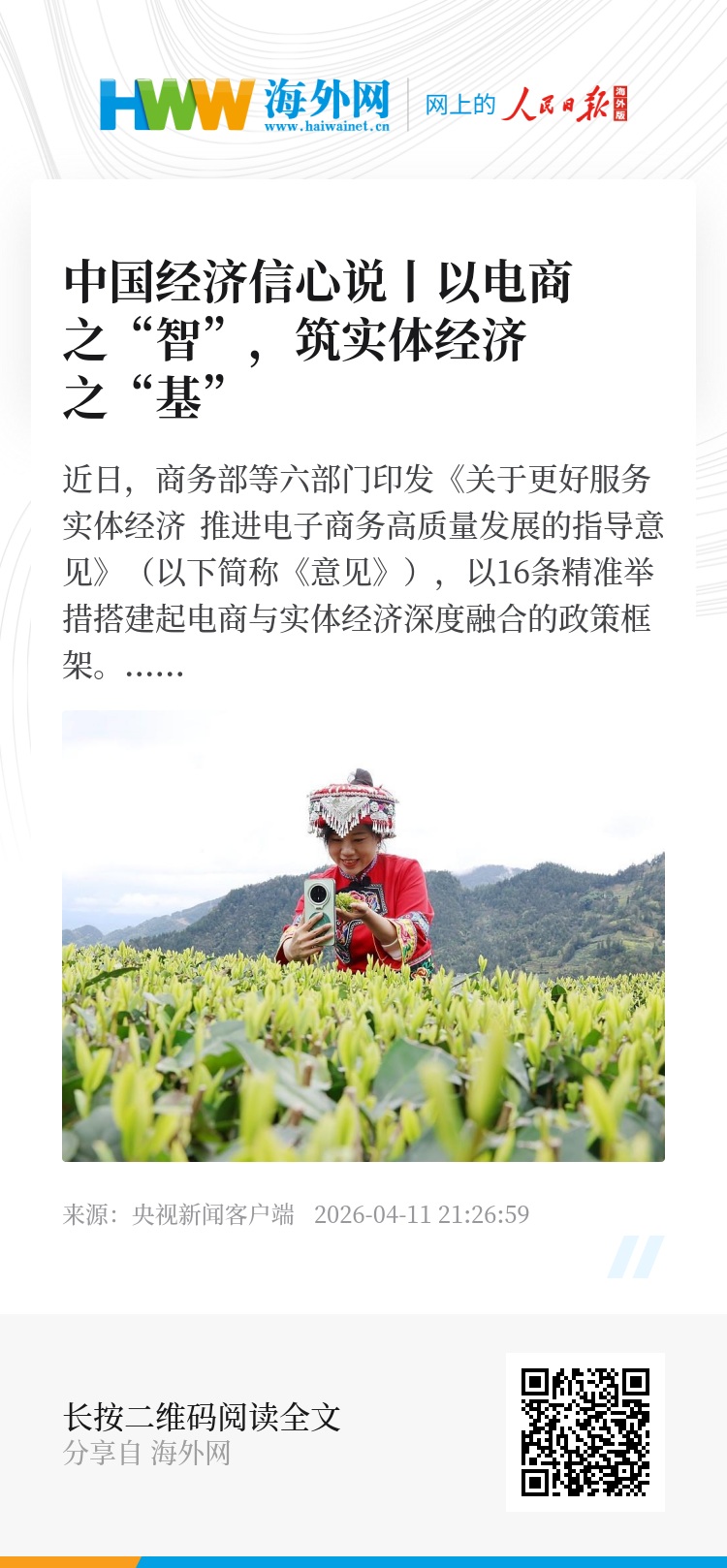 电子商务根植于实体经济、成长于实体经济,既是实体经济的重要组成,也是赋能实体经济的重要抓手。数据显示,中国网络零售市场规模连续13年稳居全球第一。2025年,全国网上零售额接近16万亿元,比上年增长8.6%。历经多年高速发展,电子商务已深度融入经济社会生活的方方面面,从最初的“补充渠道”成长为“主流阵地”。《意见》以“服务实体经济”为核心导向,推动电商从“流量驱动”向“价值驱动”转型,本质上是通过数字赋能,打通生产、流通、消费各环节的堵点,提升经济运行效率,推动形成“数字赋能实体、实体支撑数字”的良性经济生态。