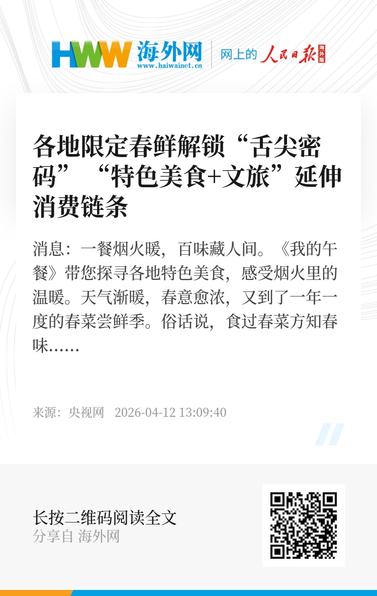 央视网消息:一餐烟火暖,百味藏人间。《我的午餐》带您探寻各地特色美食,感受烟火里的温暖。天气渐暖,春意愈浓,又到了一年一度的春菜尝鲜季。俗话说,食过春菜方知春味。接下来,我们就一起去尝尝各地的“春季限定美食”,将春天的滋味一网打尽。